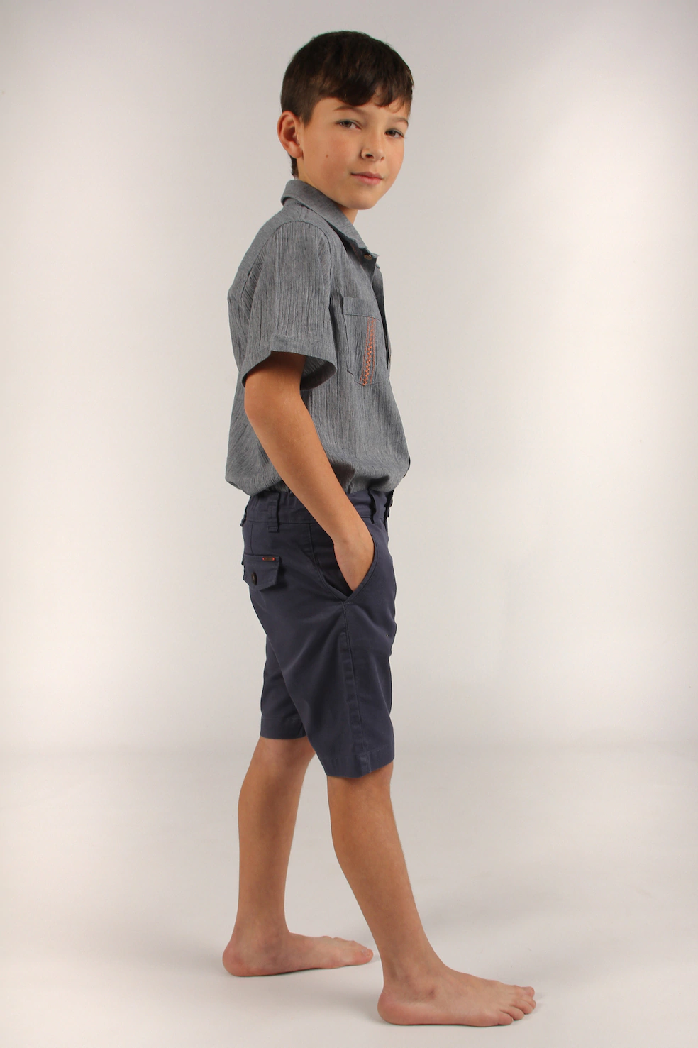 Esta Bermuda es de gabardina elastizada. Tiene bolsillos delanteros en estilo diagonal, lo que le da un toque moderno. En la parte trasera, presenta bolsillos simulados con tapa, que aportan un aspecto elegante. Además, cuenta con una cartera con cierre y botón en la parte central, lo que la hace segura y funcional. Esta Bermuda es perfecta para un look casual y sofisticado.