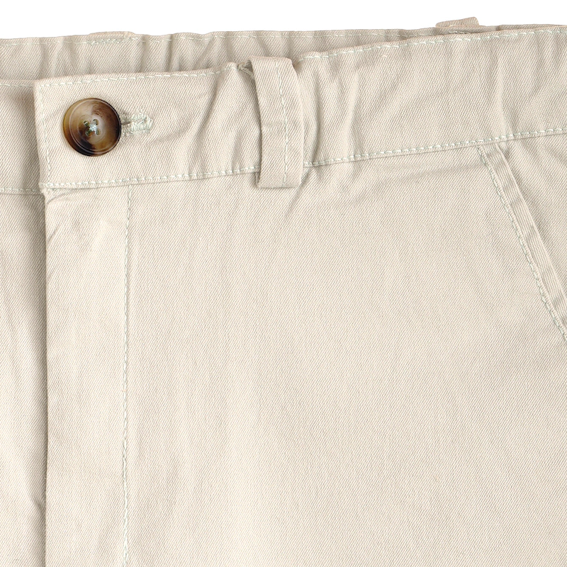 Bermuda de gabardina color. bolsillos mitre en delantero y ojal en espalda. cintura regulable.