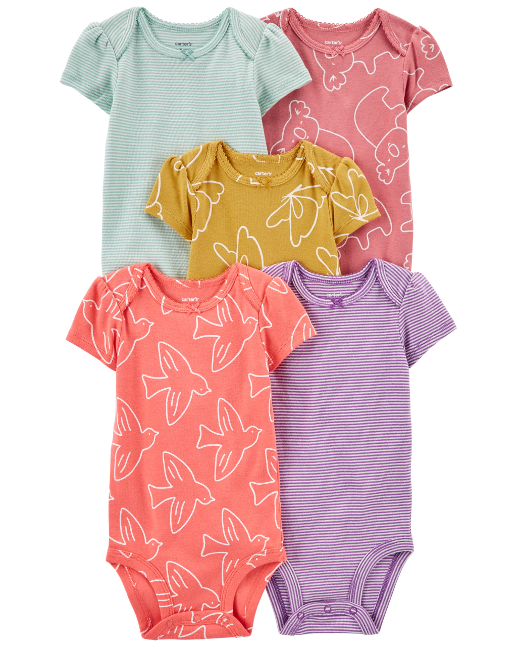 Este conjunto hecho de algodón suave incluye una remera y pantalones joggers de fácil uso.Pack de 5 unidades. Mangas cortas. Hombros súperpuestos para poner fácilmente por la cabeza. Broches fuertes que resisten al uso, lavado y repetición.100% algodón rib. Importado. Lavable a máquina.