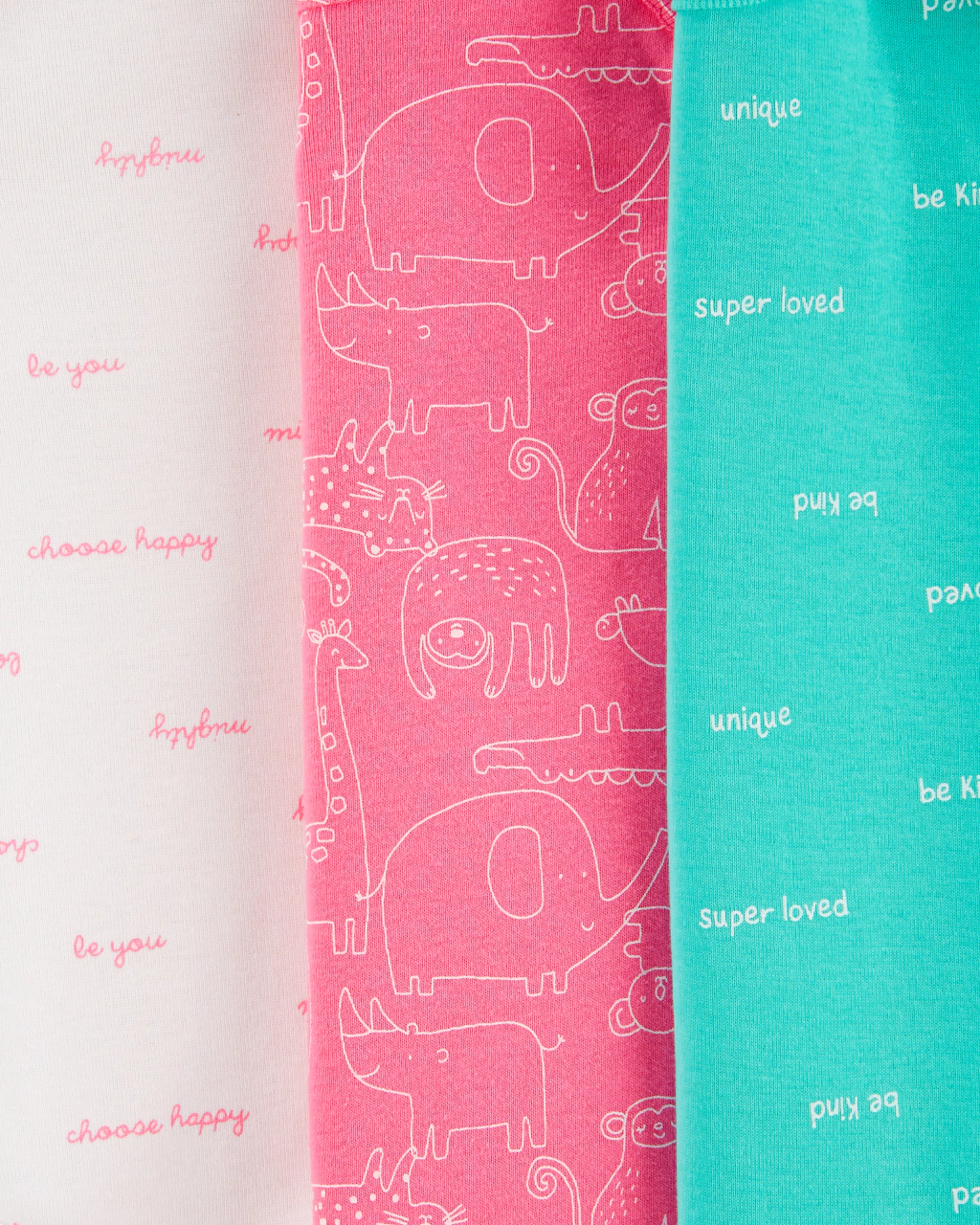 Diseñados con algodón súper suave y mucho amor, estos increíbles bodys son el comienzo perfecto de cualquier atuendo._Pack 5__Mangas cortas__ Broches sin níquel en paneles reforzados__Hombros expandibles para facilitar la cabeza__Estampa de unicornio __Eslogans: "SUPER LOVED," "BE KIND" and "UNIQUE" __ Estampado de dinosaurio __Eslogans: "CHOOSE HAPPY," "MIGHTY" y "BE YOU" __Dibujos de animales por todas partes__100% algodón___ Importado__ Lave en lavarropa_