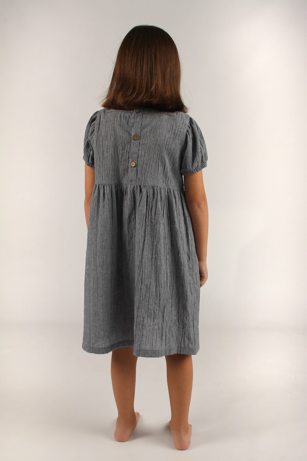 Este lindo Vestido es de lino. Las mangas abullonadas con elástico les permiten moverse con libertad, y el Cuello cuadrado y la pechera bordada le dan un toque de estilo especial. El faldón fruncido añade un toque de elegancia y diversión.